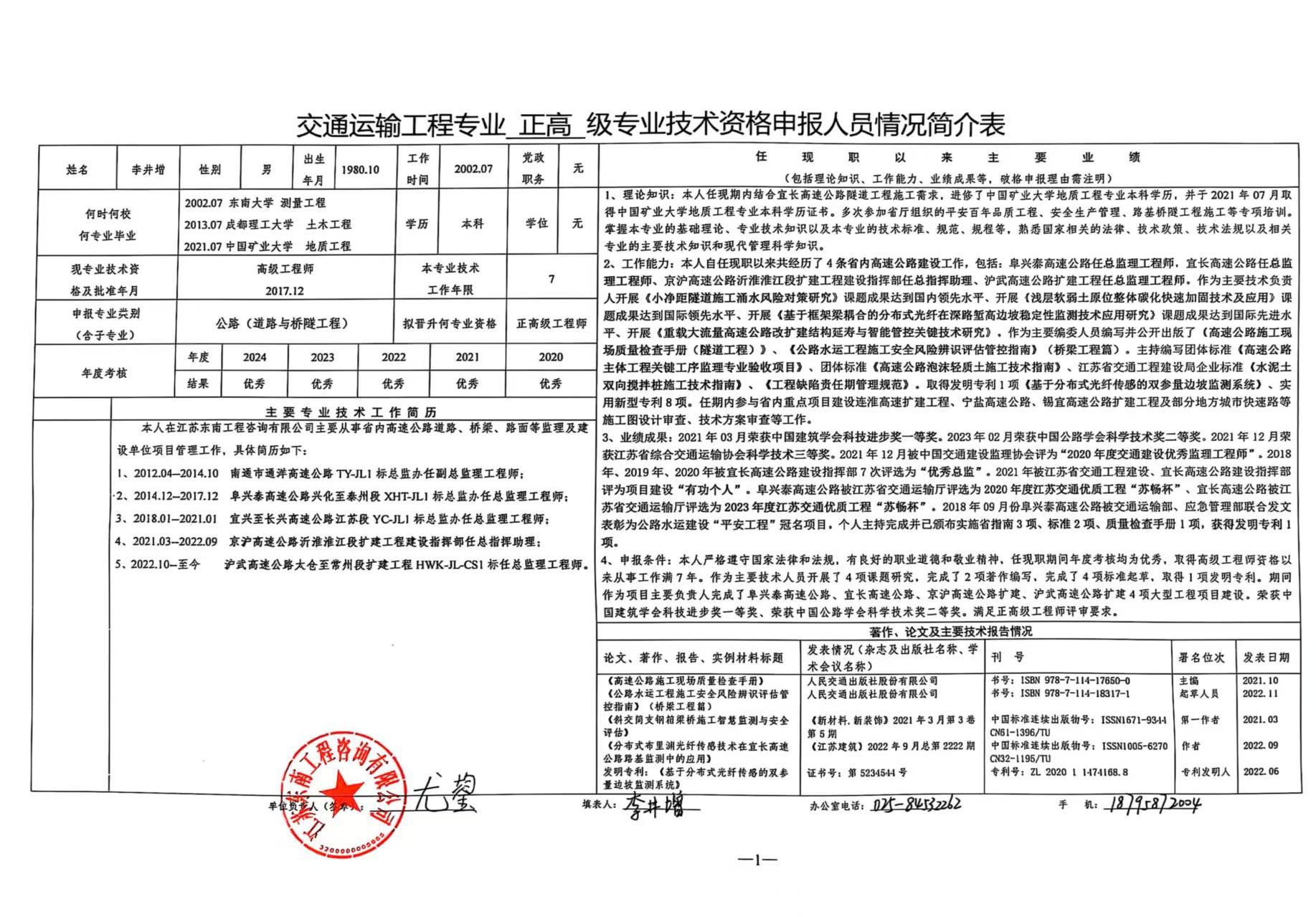 根據(jù)《江蘇省交通運(yùn)輸工程專業(yè)技術(shù)資格條件(試行)》規(guī)定,2025年度有李井增同志擬申報(bào)江蘇省交通運(yùn)輸廳交通運(yùn)輸工程公路(道路與橋隧工程)專業(yè)正高級(jí)工程師。為體現(xiàn)公開、公平、公正原則,廣泛聽取群眾意見,現(xiàn)將擬申報(bào)人員信息予以公示。